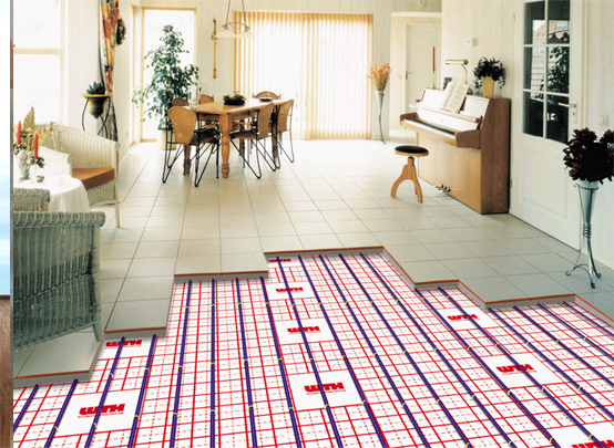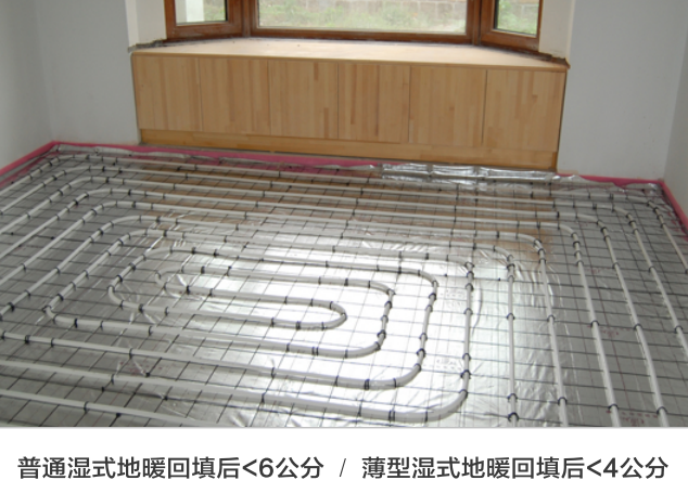 是以溫度不高于60℃的熱水埋置于地面以下填充層中的加熱管內循環流動,