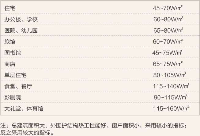 消費者可根據房屋的用途,用房屋面積乘以上述數據,得出房間需要的供熱量。但以上僅